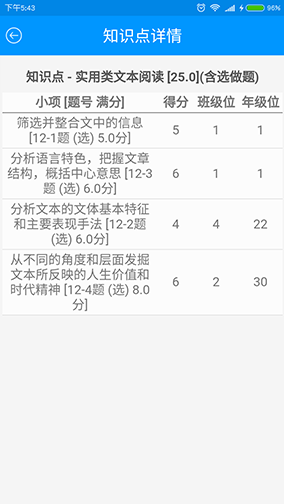 展示市、区、县、班级以及学生的历次考试数据(总分/单科/知识点/能力值)和排名,可横/纵向比较。